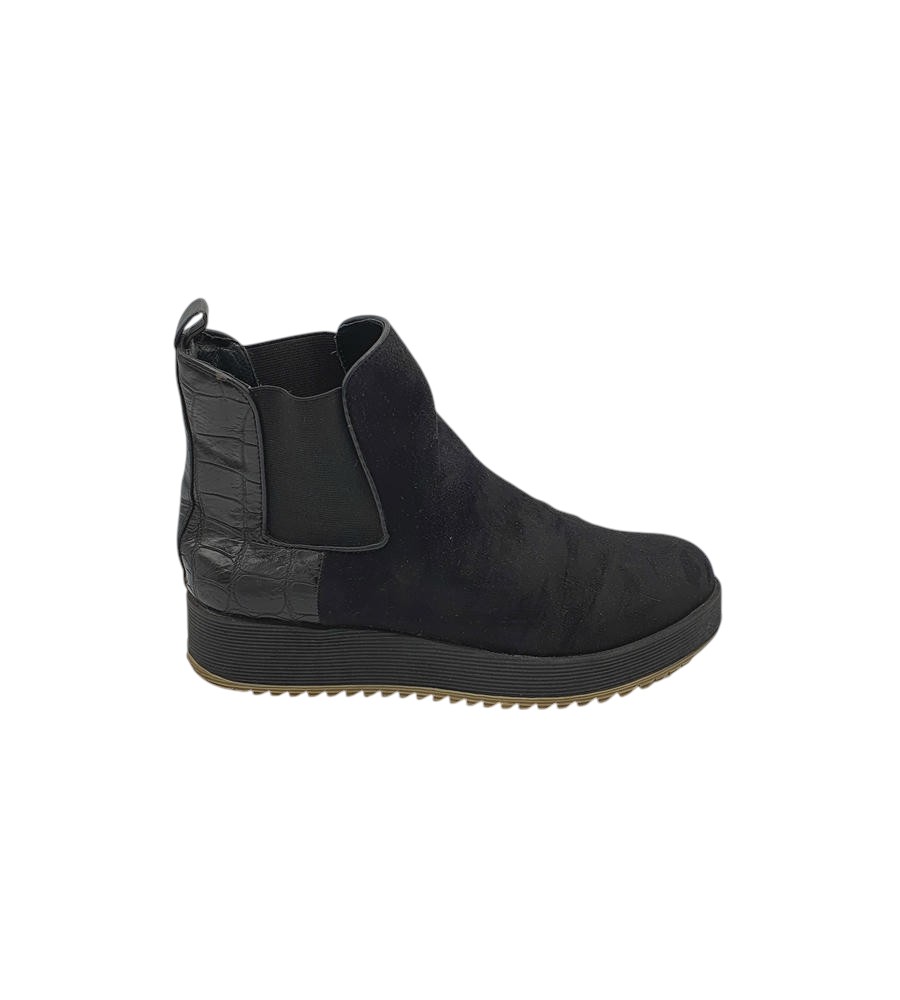 Botine dama La strada 37, material textil, imitatie de piele, negru