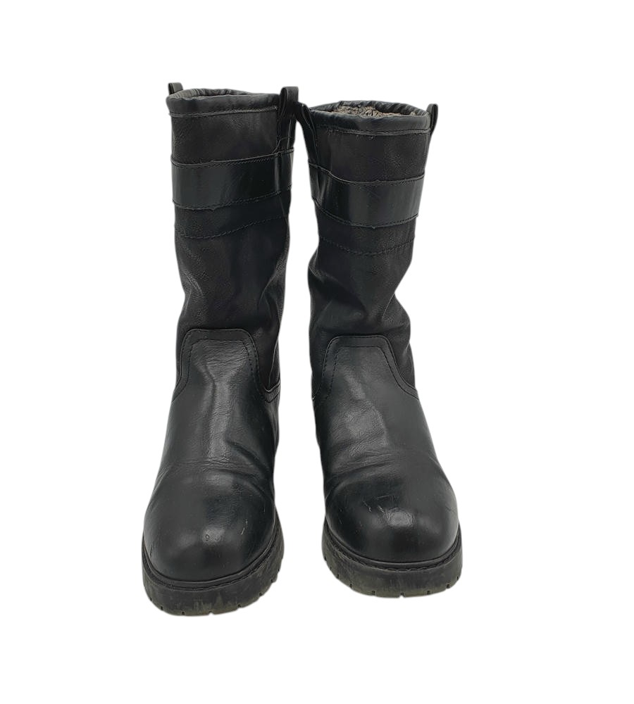 Cizme dama Graceland 38, imitatie de piele, negru, imblanite