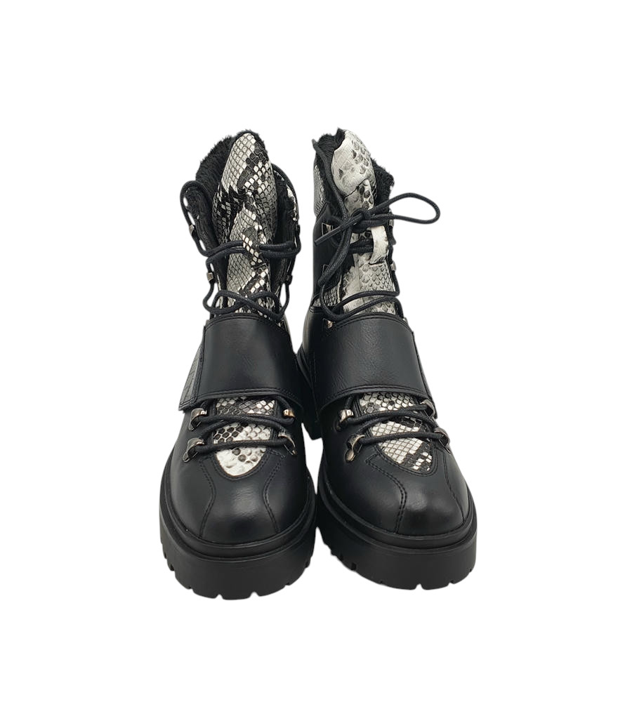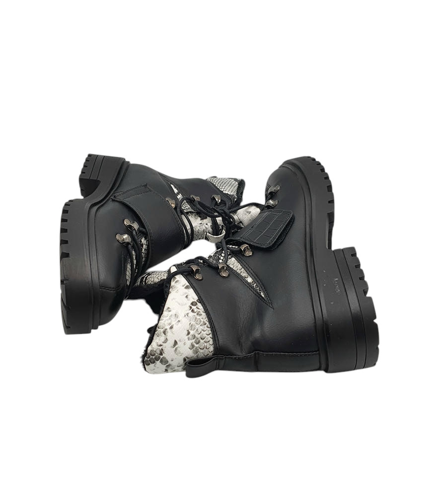 Ghete dama Piao Du 36, imitație de piele, negru, imblanite