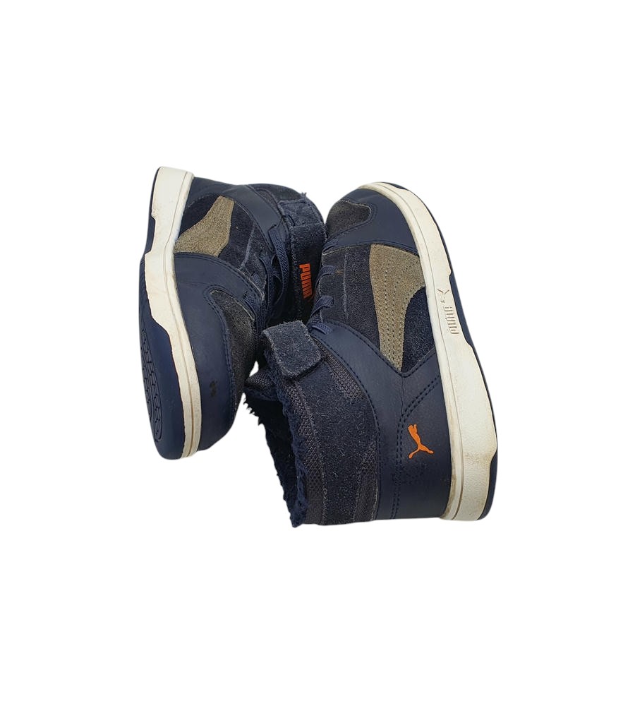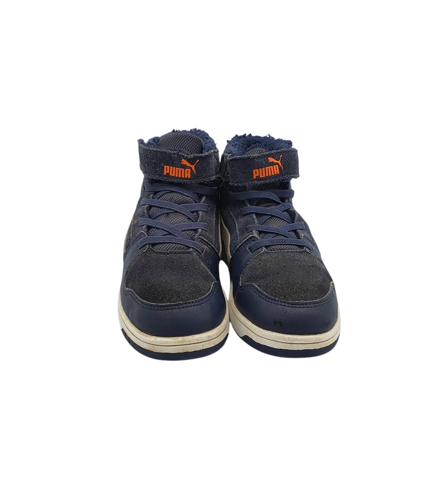 Ghete copii Puma 33, imitație de piele, negru albastru, imblanite