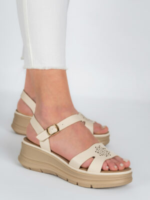 Sandale dama Lady Solea, imitatie de piele, crem