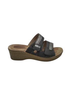 Sandale dama Footflexx, 38, imitatie de piele, negru gri