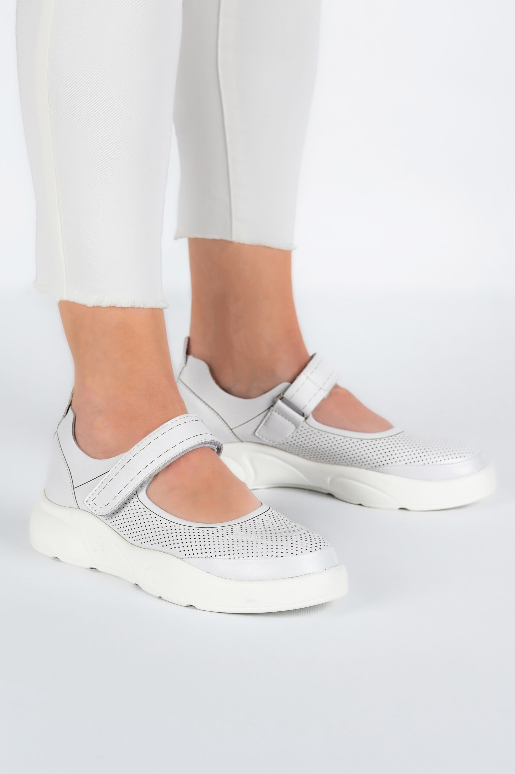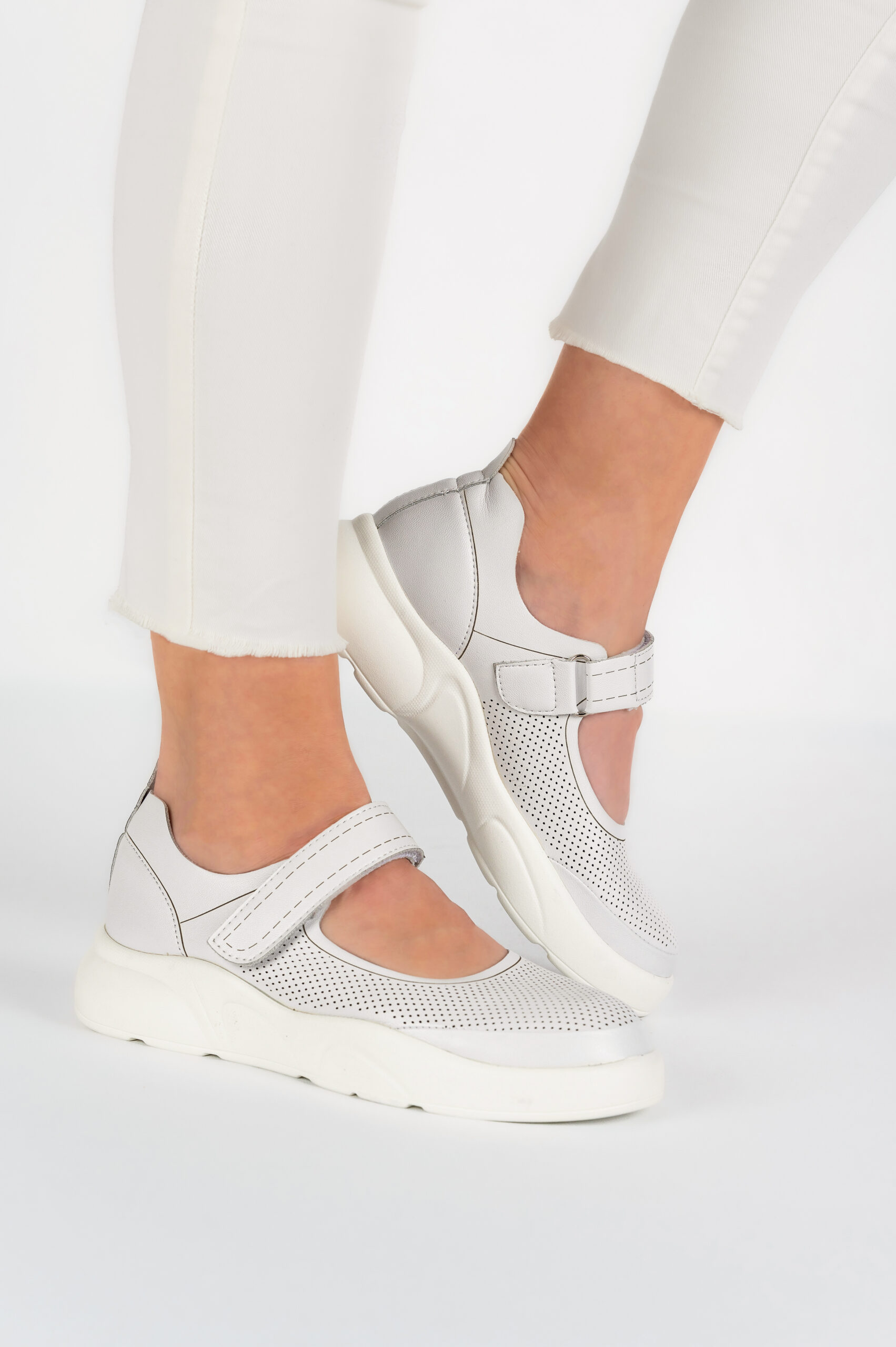 Sandale dama Lady, imitatie de piele, alb