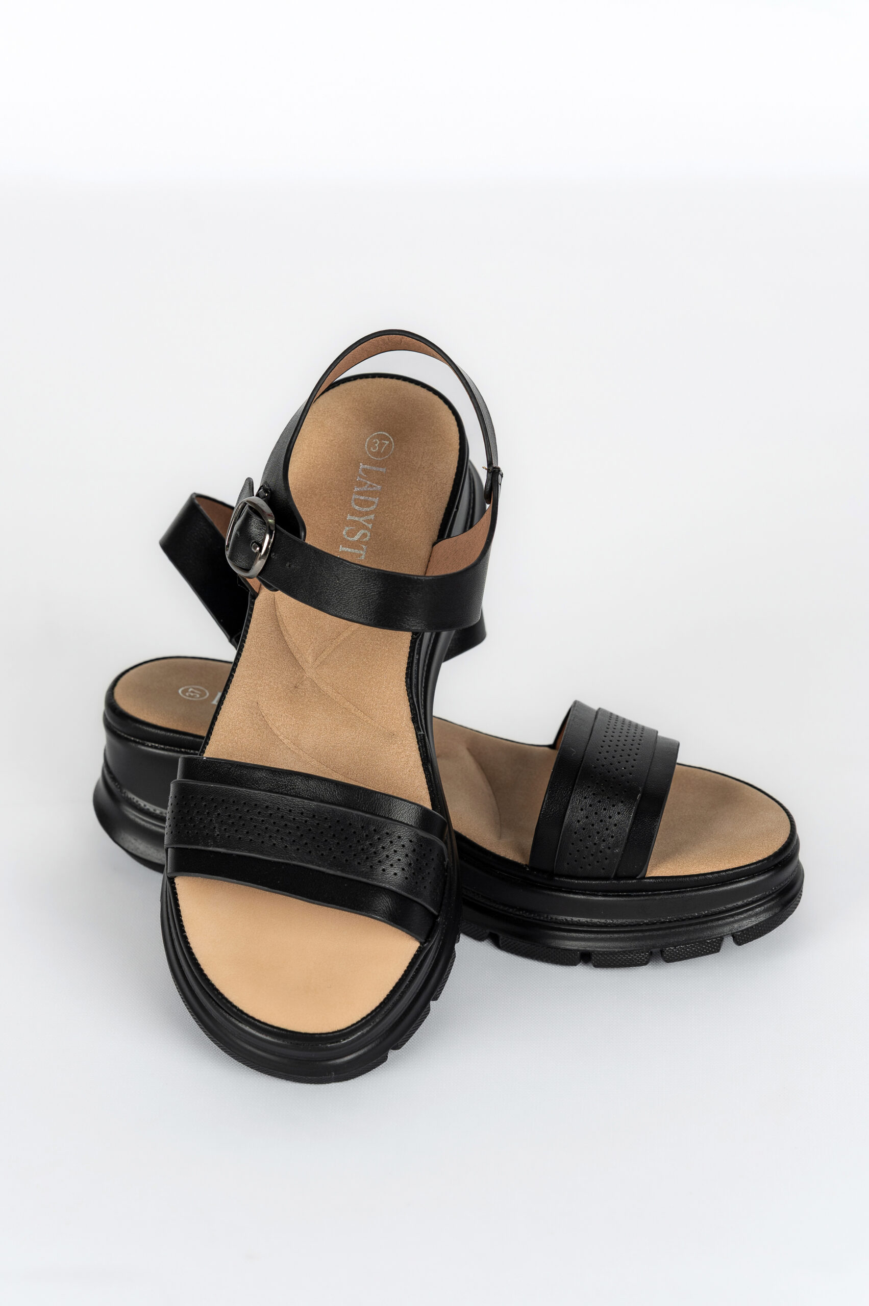 Sandale dama Lady, imitatie de piele, negru
